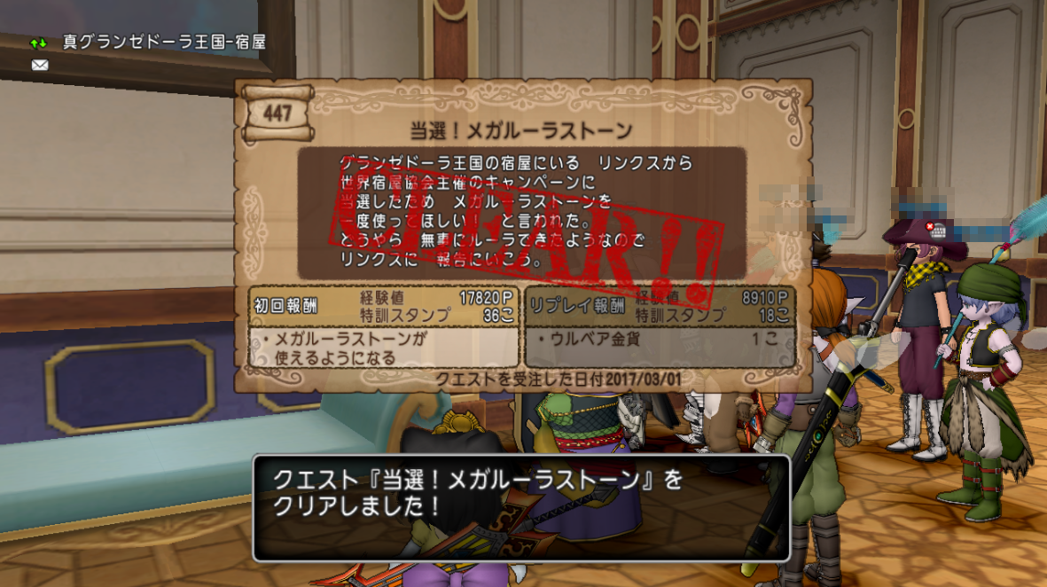 クエストno 455 スペシャルな石をあなたに お得な無料キャンペーン を攻略 メガルーラストーンを拡張できるクエストです さっちゃんねる Dqx
